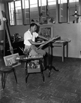 Bror Utter, after years of having to divide his time between his painting, art classes and a lithography business, has decided to become an artist on a full-time bases. He's shown here at work in his recently-completed studio at 3512 Mattison.