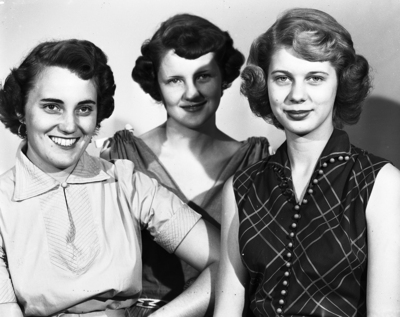 Three First Methodist church young people who as committee chairmen are responsible for the program of youth activities week, starting in the church are, left to right, Alpha Davis, publicity, Charlene McLeroy, worship, and Rita Gaye Scott, recreation. Published in Fort Worth Star-Telegram morning edition August 12, 1951.