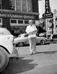 A. T. Crump of 5325 Randolph CT is co-operating with the cameraman to show poor pedestrian habits. In this photograph as the absent-minded jaywalker he is shown walking while reading a newspaper. Published in Fort Worth Star-Telegram morning edition, August 16, 1951.