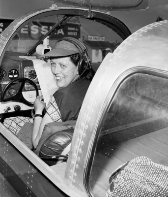 Participant in the All-Women Transcontinental Air Race who checked in at Meacham Field and spent the night in Fort Worth is Lois Bartling of San Diego, California. Published in Fort Worth Star-Telegram evening edition, August 17, 1951.