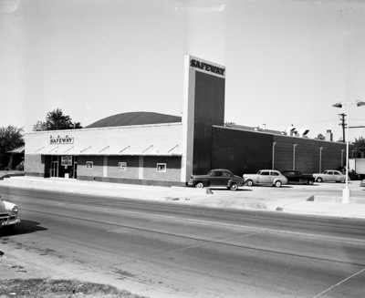 Safeway Store's largest food center in Fort Worth will open at 2916 Hemphill. Exterior of the masonry building is lighted by neon tubes. Published in Fort Worth Star-Telegram morning edition, August 19, 1951.