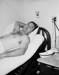 Bill Costa, 31, above, Houston Buff shortstop, who was admitted to the polio ward of City-County Hospital. His condition is termed fair by doctors at the Fort Worth Hospital. The veteran ball player arrived for a night game but illness kept him out. Bill Costa is shown laying on bed in the photograph. Published in Fort Worth Star-Telegram evening edition, August 21, 1951.