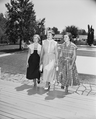 College girls, campus bound, talk of "rush" and campus. Three of a Kind: Pat Wylie, left; Gayle Brewster, center, and Carol Wayman will attend William Woods College.