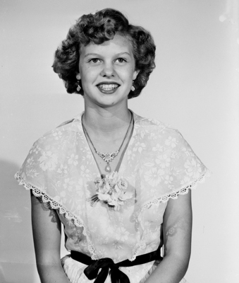 Joyce Dell Luster, 14, will be a candidate in the Labor Day queen contest at Sycamore Park. Joyce Dell, daughter of Mr. and Mrs. Hugh E. Luster, 1508 E. Illan, represents Carpenter Local 1822. A portrait of Joyce Dell Luster is shown. Published in Fort Worth Star-Telegram morning edition, August 23, 1951.