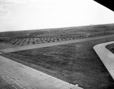 Picture of planes belonging to members of the National Flying Farmers Association attending their sixth annual convention in Fort Worth. The planes, lined row-on-row at Meacham Field, have replaced slower means of transportation for the rural resident and furnish a fast means of covering large areas. Published in Fort Worth Star-Telegram morning edition, August 27, 1951.