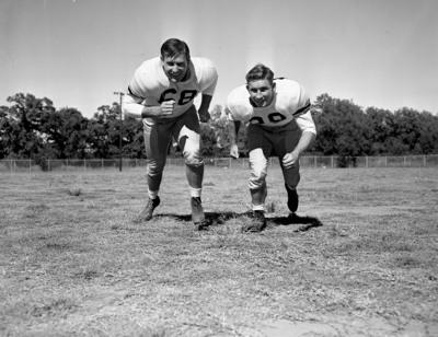 The photograph shown left to right, Lewis (Bud) McFadin and Horace (Bud) Sherrod playing football.