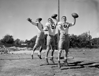 Left to right, Vernon Glass, W. C. Cooper and Brian Mullenick are shown with a football in their hand.