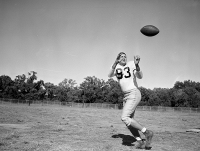 Bob Fletcher, who used to rope 'em in for Ole Miss in his collegiate days, will play end for the Carswell Air Base Bombers this fall. Published in Fort Worth Star-Telegram evening edition, August 28, 1951.