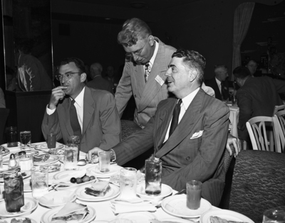 H. H. Kaveler, left, assistant manager of production, Phillips Petroleum Company, discusses a point with R. B. Kelly, Fort Worth manager of the Pure Oil Company's Texas producing division.