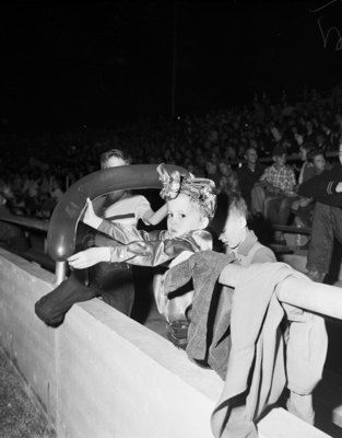 Mary Lou West, 6, lost interest in the action on the field when a big red balloon came her way.