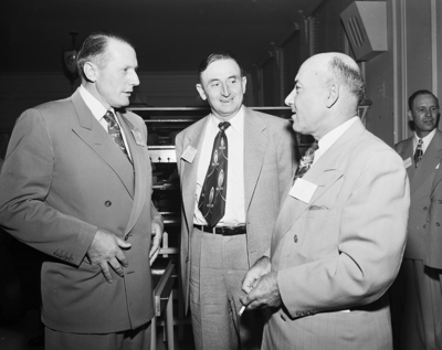 On hand from the Delta Drilling Company was this trio. Left to right: O. E. Mechem, Denver, Colorado; Guy B. White, Evansville, Indiana, and Chris Zeppa, Tyler. Published in the Fort Worth Star-Telegram evening edition, September 25, 1951.