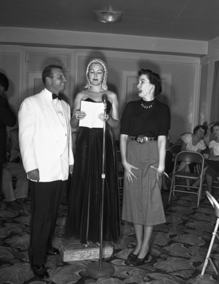 Sam Kemp, interlocutor, trades lines with Mrs. Asa Watson, center, and Mrs. R. D. Brooks.