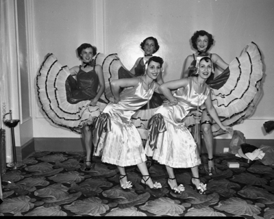 The dancing dolls are, back row, left to right, Mrs. Paul Vinsant, Mrs. Cleon Gorbett, and Mrs. Floyd Casstevens; and front row, Mrs. Coke Davis, left, and Mrs. Barney Raines.
