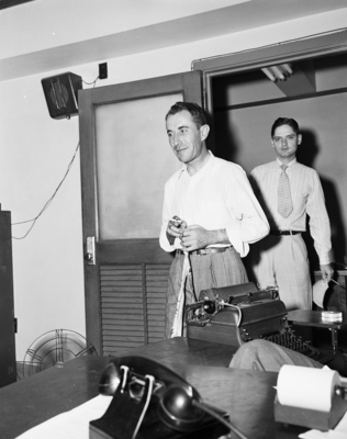 Leo Martin shown at police station. Escaper or parolee? Published in the Fort Worth Star-Telegram morning edition, October 1, 1951.