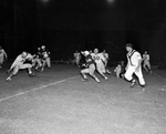 Augie Saxe, Texas Aggie halfback, scampers on his way to a 10 yard gain while Texas Tech's Charles Welton (30) makes a futile reach in game at Cotton Bowl. Kenneth Elmore(79), in background, made tackle. Published in Fort Worth Star-Telegram morning edition, September 30, 1951.