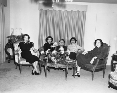 Series on the council of Jewish Women. Relaxing. Left to right, Mmes. Henry Mack, Maurice Cohn, Leo Lederman, Ed Whittenburg, and Milton Rosenbaum.