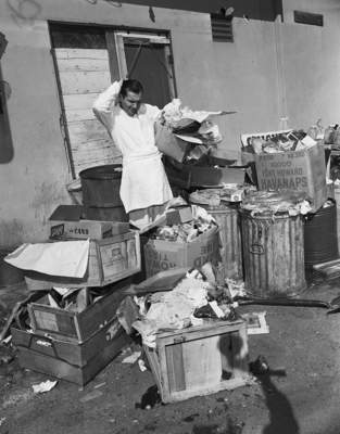 Cooks; Alleys; Drive-in restaurants; Refuse; Trash cans; Boxes; Garbage collectors' strikes; Garbage collecting; Strikes