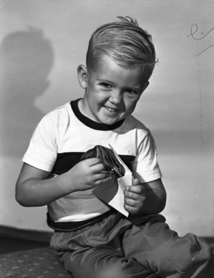 Maurice Hebert, 5 years old, made quite a grown-up speech when he presented a gift of 5$ to the Star-Telegram Milk and Ice Fund.
