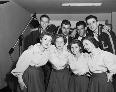 Schools. Laneri High School. Front row left to right, Laura Twitty, Mary Jo Mackey, Barbara Steffen, and Peggy Dougherty, Back row, left to right, David Kerns, Charles Laue, Bobby Carrigan, and Jimmy Bizzell.