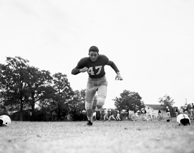 John Dennehy will be one of the Arlington linebackers in 2A semifinals against Anson at Amon Carter Stadium. Published in Fort Worth Star-Telegram evening edition December 13, 1951.