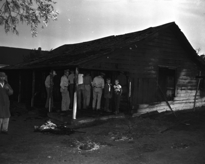Fires. Exterior shot of postwar home in Grapevine by gas blast.