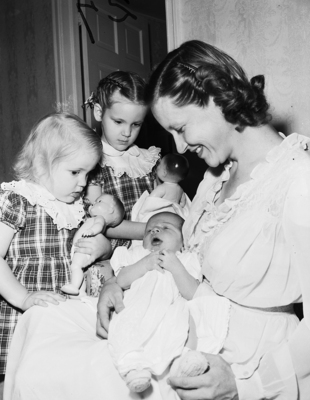 Mrs. W. G. Bedworth Jr. with daughters Donna Lynn, left, and Barbara Ann. Baby is William Arthur Bedworth.