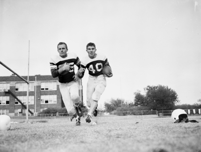Half the backfield Tech will start against North Side. Pat Pennington, left, is fullback and Jimmy Dyer plays right half. Published in Fort Worth Star-Telegram evening edition November 8, 1951.