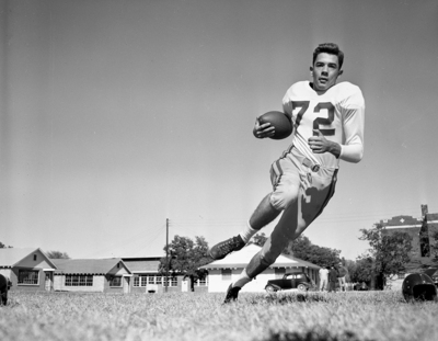 Harry Braeuer of Stephenville High football is shown in action in the photograph. Published in Fort Worth Star-Telegram evening edition, October 25, 1951.