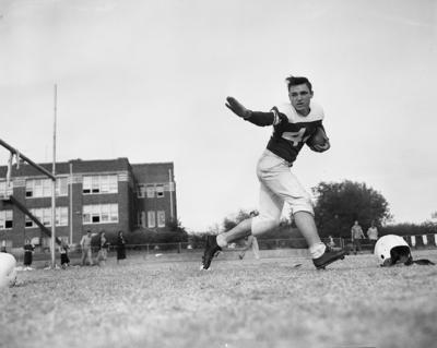 Wearing the uniform number 44 is J. W. McKay. He is a football player from Tech High School. Published in Fort Worth Star-Telegram evening edition October 25, 1951.