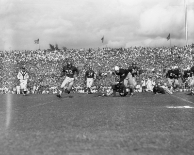 View of football game of Texas A&M against Baylor University. Wearing the Uniform number 32 is Frank Bouldin from Baylor.