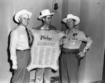 A Pledge For 52'. Three Packard representatives hold a "skin" pledge stating that Texas dealers will sell more cars than any other zone during 1952. Left to right, Hayes M. Walker, dealer, Earl Powell, district service representative, and Albert J. Meek, dealer.