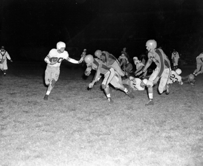 Diamond Hill's Kenneth Bannister romps for yardage against Birdville at Farrington Field. He scored three touchdowns in 27-0 victory. Published in Fort Worth Star-Telegram evening edition November 2, 1951.