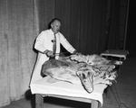 Demonstrations of meat, its origin and preparation highlighted the final sessions of Texas Livestock Roundup. Roy Snyder, Texas A&M meat specialist, demonstrates the origin of retail cuts on a quarter of beef.
