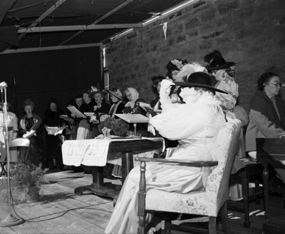 Participants in centennial celebration for old Fort Belknap in Young County. The Thursday Club of Bowie in the Gay Nineties skit offered to some 3,000 watchers.