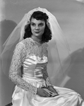 Portrait of Mrs. Donald Lee Jacobs. She is wearing a wedding dress.