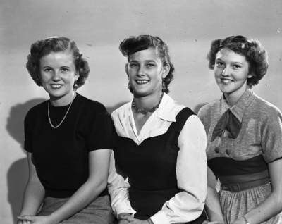 Miss Margie Conner, right, 18-year-old senior at Birdville High School, was crowned football sweetheart at half time ceremonies at the Arlington Birdville football game. She is the daughter of Mr. and Mrs. O. D. Conner of 2332 Field. Center is Jeanette Lassiter, daughter of Mr. and Mrs. Jack Lassiter, 2116 Haltom Rd and left is Dale Shurbet, daughter of Mr. and Mrs. Ben Shurbet, 5812 Ellison.
