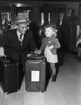 Fifteen-year-old Peter Kochmann of Germany, who will his home with Mrs. T. W. Gates of 3636 Mount Vernon, says goodbye to Anna Husiak, 2-year-old daughter of Mr. and Mrs. Mykola Husiak of Ukraine who are on their way to Denver, Colorado.