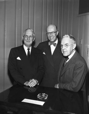 Three chairmen of the campaign to raise building funds for St. Stephen Presbyterian Church discusses their plans at the church's organization meeting. Left to right, are Earl C. Scott, chairman of the building committee; Harold G. Neely, chairman of the advanced gifts group, and O. S. Hockaday, campaign chairman.
