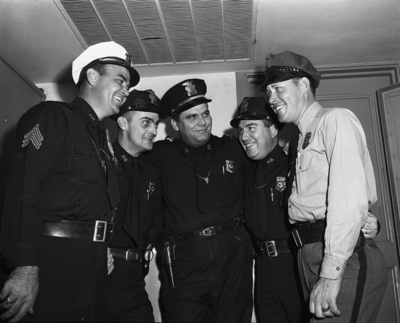 Diamond Hill ex-students will have ample police protection at their dinner dance in the Peninsula Club. Six members of the ex-student association are city policemen. Left to right are Sargent Dwight Johnston, Patrolman H. W. Jordan, Lieutenant Wilford Matlock, Patrolman Bert Wacasey and Motor Officer Herbert Hungerford. Not pictured is Sargent J. E. Williams.