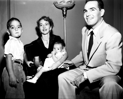 Image shows, left to right, Charles III, Mrs. Charles H. Massey Jr. holding Melissa Ann and Mr. Charles H. Massey Jr. They are here from Van Nuys, California, visiting his parents, Mr. and Mrs. C. H. Massey, 2448 Winton Terrace East, who held open house for the guests.