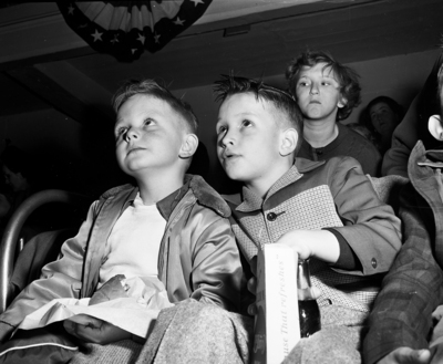 Two young boys, Jack McCasland, left, and Berrie Burpo are looking up at the Shrine Circus performance.