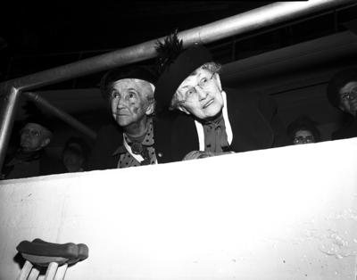 Mrs. Eloise Duncan, left, and Mrs. Mattie Benson look out during the Shrine Circus.