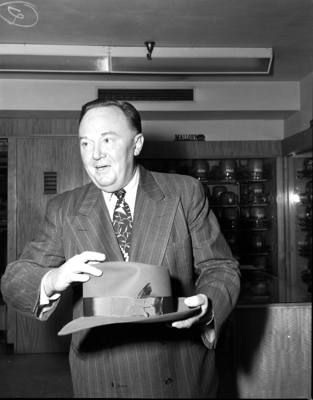 Clipping reads: "Fort Worth [residents] were asked what they hope they'll have to be thankful for by Thanksgiving of 1952...If Homer C. McCart of 918 8th Ave., a hat salesman, has any fancy wishes, he kept them under his hat. 'I'll be thankful just to be alive,' he said. 'And I hope we're not at war, of course.'" Photo shows a man wearing a suit and tie and is holding his hat in his hands.