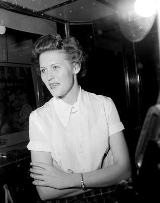 Clipping reads: "Fort Worth [residents] were asked what they hope they'll have to be thankful for by Thanksgiving of 1952...Miss Pat Pratt, a theater cashier of 1131 St. Louis, will be thankful for 'a great big turkey.'" Photo shows a woman with her arms folded.