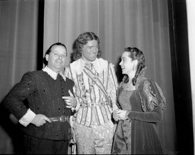 Shown in their costumes for "Lucia di Lammermoor" are singers who will be heard at opening of the Star-Telegram Christmas Tree and Music Festival. Left to right are Bruno Landi, Norris Greer, and Graciela Rivera.