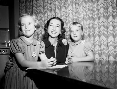 Image shows Electra Waggoner, who left her studio at Santa Rosa Ranch, Vernon, Texas to come to Fort Worth for a holiday with her two favorite models, her daughters, Electra, 7, left and Helen, 5, right. Her daughter, Electra is already a budding artist.