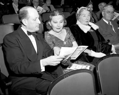 Settled in their seats for a quick look at the program are Mr. and Mrs. W. C. Preston, with Mrs. Jed Rix, seated on far right.