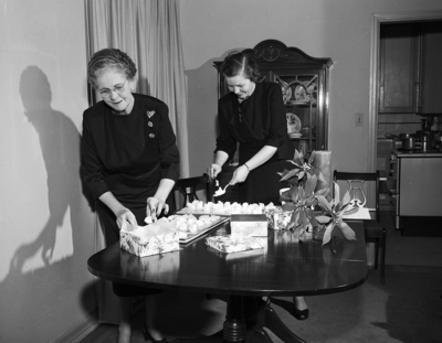 Mrs. Fannie Coffey, left, and Miss Frances Coffey baking cookies.