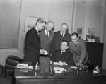 These five men, named to important state posts in the Baptist denomination will be honored at a Broadway Baptist Church homecoming. Standing, left to right, T. Gordon Ryan, A. B. Culbertson, William Fleming and W. L. Howse. Seated, Dr. H. Guy Moore, pastor. Published in Fort Worth Star-Telegram morning edition, March 12, 1950.