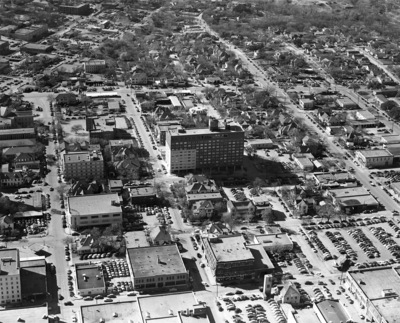 Fortune Arms Hotel, Burnet and W. 1st Street, Fort Worth; airview of the hotel/apartment building, 12/07/1951